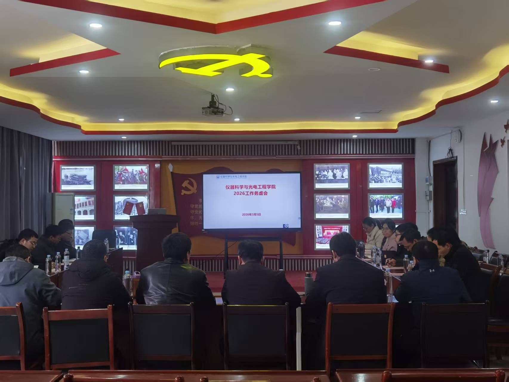 龙马精神谋发展,砥砺奋进谱新篇。3月5日,仪器科学与光电工程学院在教学楼F315召开2026年工作务虚会,统一思想、共谋发展。全体院领导、工会主席、系部正副主任、教职工党支部正副书记及科级干部参加会议。会议由学院党委书记蒋磊主持。