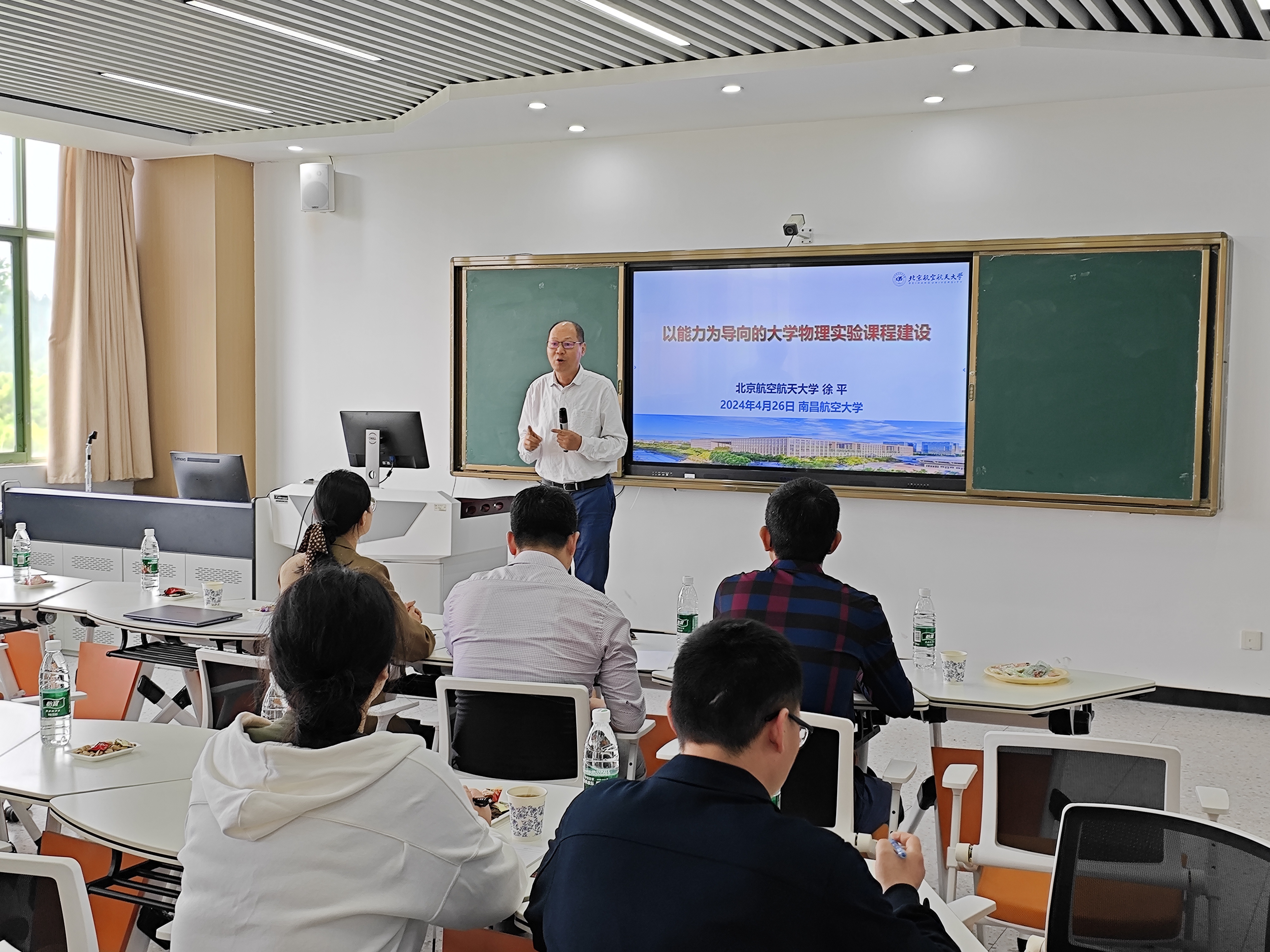 为了推动大学物理实验中心的教学改革,突显实验中心的特色,明确在未来教学改革中的方向,大物此次的教学法活动特别邀请了北京航空航天大学徐平教授,于4月26日下午在综合楼南407举办了题为“以能力为导向的大学物理实验课程建设”的讲座。会议由大学物理实验中心主任史久林教授主持,各系部教师都积极参与。